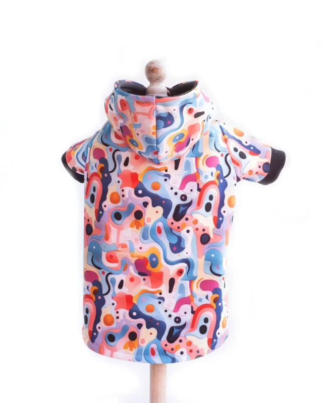 Geaca Catei Softshell Multicolor este prevazuta cu gluga , impedicand apa sau zapada sa se scurga pe gatul cainelui in interiorul hainutei si protejeaza caile respiratorii superioare.