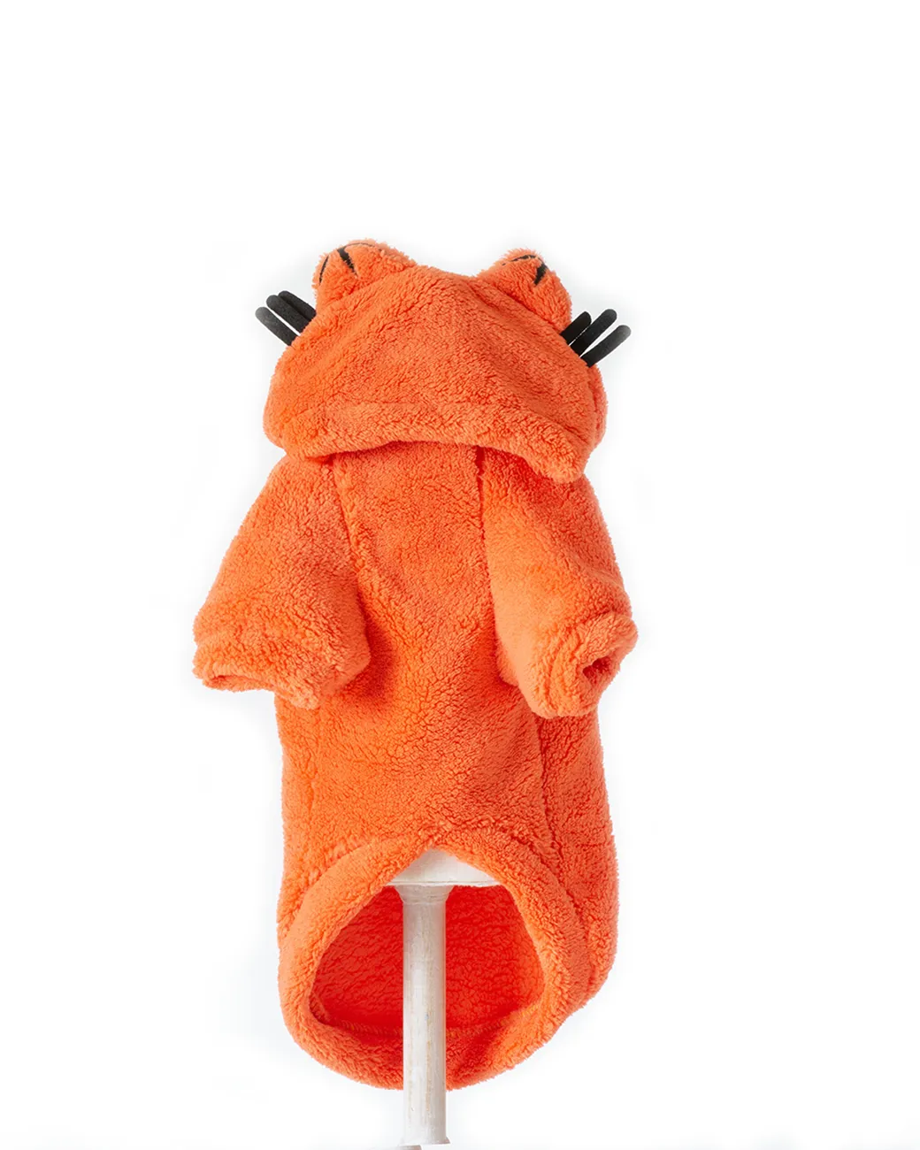 Hanorac portocaliu pentru câini super pufos, cu glugă, urechi și mustăți de motan – model adorabil și mega confortabil! Perfect pentru zilele reci, plimbări vesele și poze haioase. Material moale, plăcut la purtare și ușor de îmbrăcat.