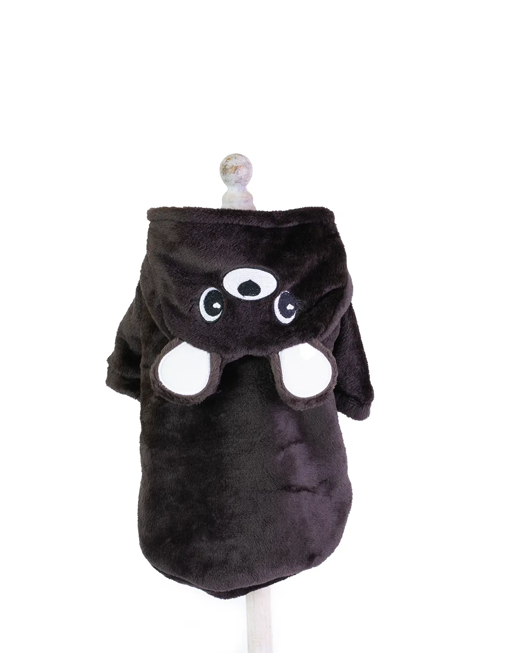 Hanorac pufos pentru câini maro cu glugă Ursuleț